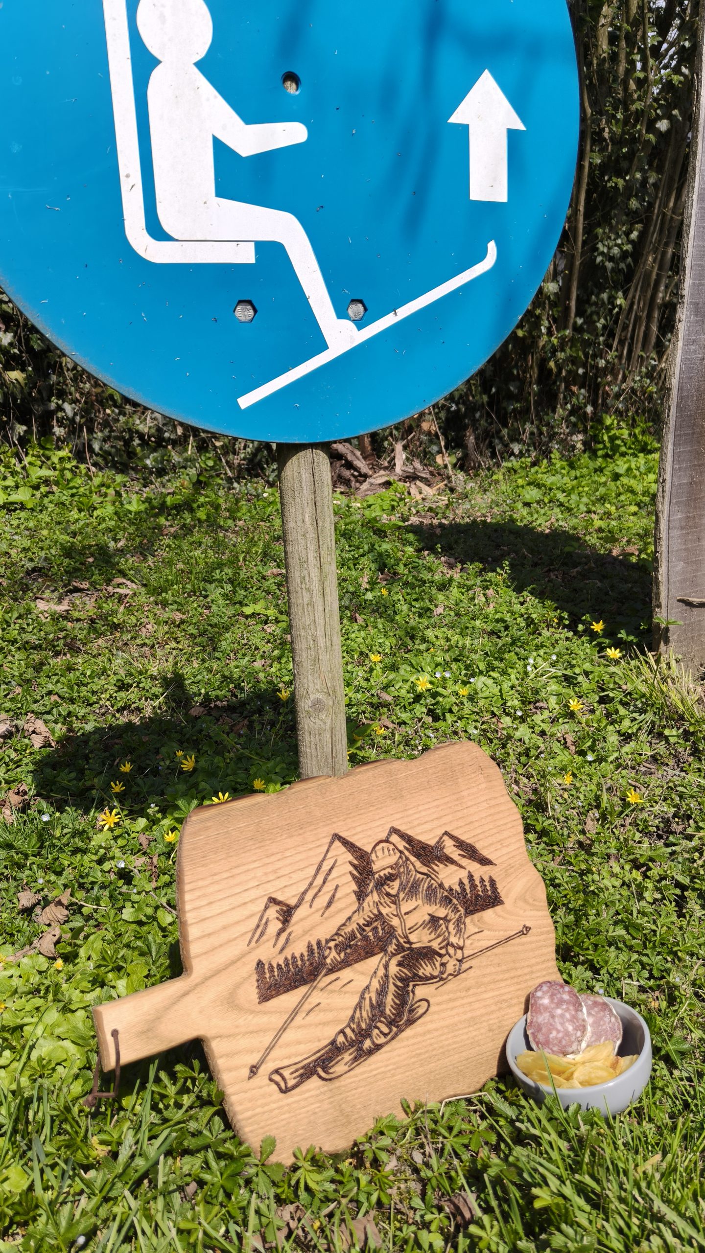 Planche fromage bois « Skieur » Fromage/Charcuterie 30cm