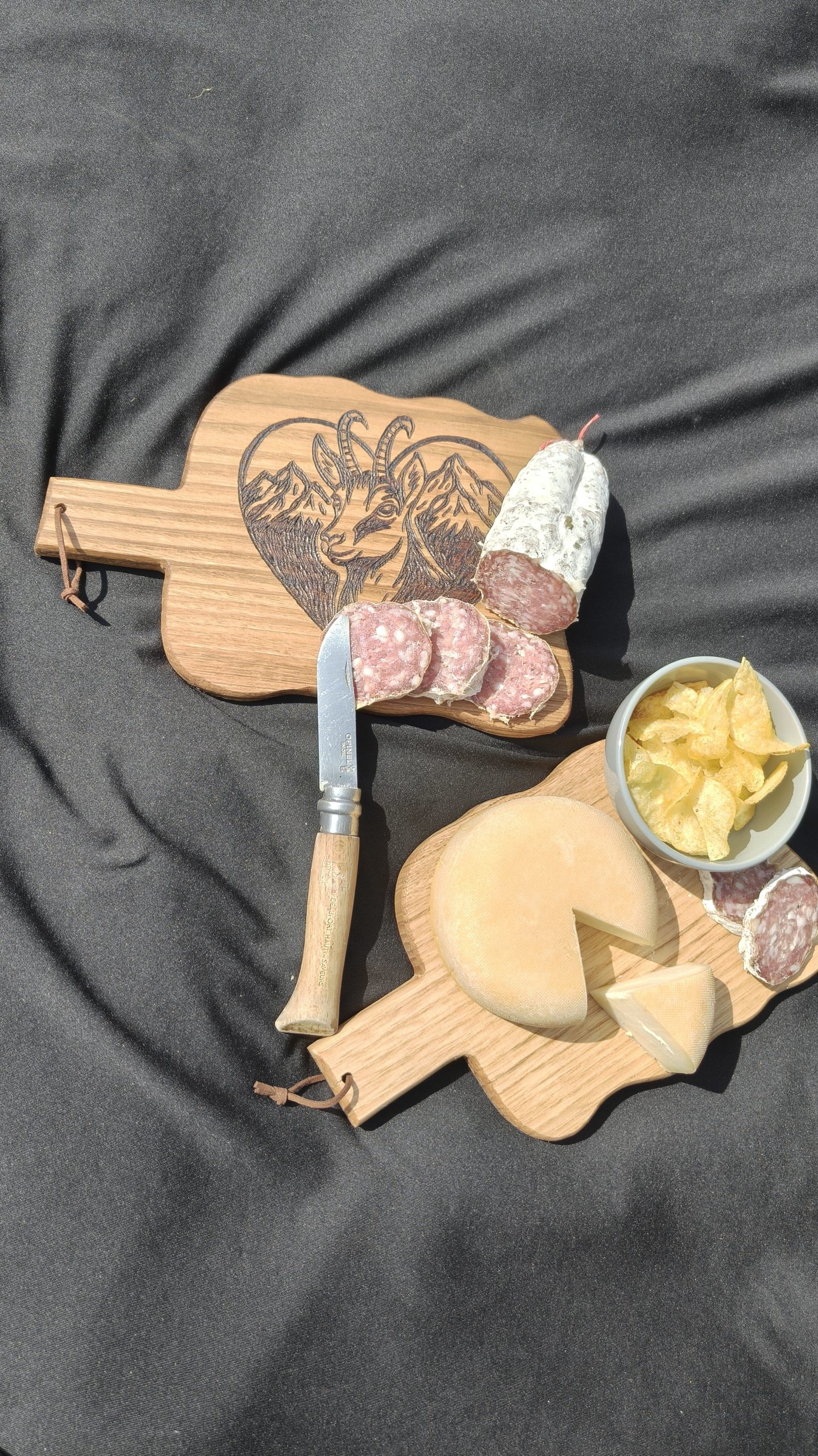 👉🏻 Utilité : Cette planche pourra autant vous servir à l’apéro entre amis ou famille, en posant du fromage ou de la charcuterie. En centre de table, elle saura accueillir vos plats chauds sans se soucier de lui laisser une marque noire. Pour finir, en cuisine, utilisez-la en planche à découper. Privilégiez une utilisation au verso afin de préserver le dessin. Le nettoyage est simplifié grâce à l’application de l’huile de lin en finition, un coup d’éponge et de l’eau suffira pour qu’elle soit de nouveau prêt à être utilisé.