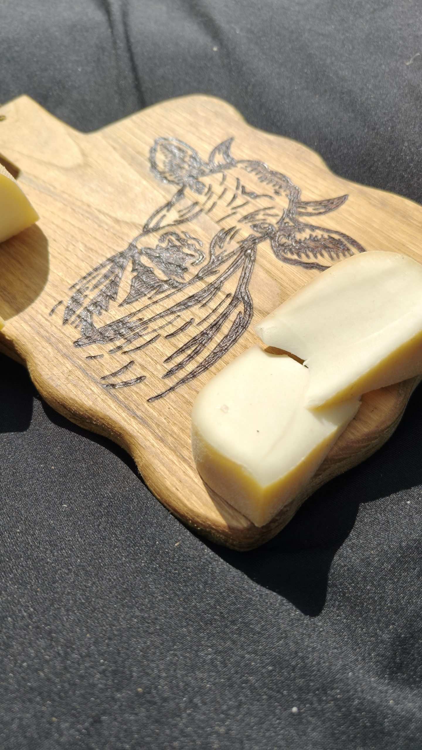 👉🏻 Utilité : Cette planche pourra autant vous servir à l’apéro entre amis ou famille, en posant du fromage ou de la charcuterie. En centre de table, elle saura accueillir vos plats chauds sans se soucier de lui laisser une marque noire. Pour finir, en cuisine, utilisez-la en planche à découper. Privilégiez une utilisation au verso afin de préserver le dessin. Le nettoyage est simplifié grâce à l’application de l’huile de lin en finition, un coup d’éponge et de l’eau suffira pour qu’elle soit de nouveau prêt à être utilisé.