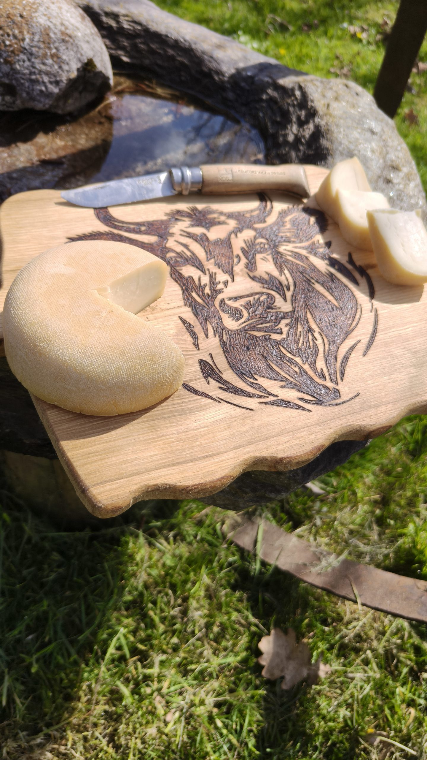 👉🏻 Utilité : Cette planche pourra autant vous servir à l’apéro entre amis ou famille, en posant du fromage ou de la charcuterie. En centre de table, elle saura accueillir vos plats chauds sans se soucier de lui laisser une marque noire. Pour finir, en cuisine, utilisez-la en planche à découper. Privilégiez une utilisation au verso afin de préserver le dessin. Le nettoyage est simplifié grâce à l’application de l’huile de lin en finition, un coup d’éponge et de l’eau suffira pour qu’elle soit de nouveau prêt à être utilisé.